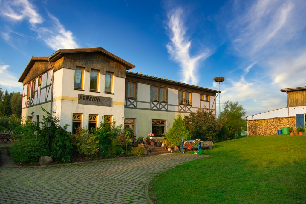 Hier können Sie Ihren Urlaub verbringen oder während Ihrer Geschäftsreise oder Montage Entspannung finden. Seit 1994 haben wir ein besetztes Storchennest auf dem Hof. Das freut unserer Gäste immer sehr.