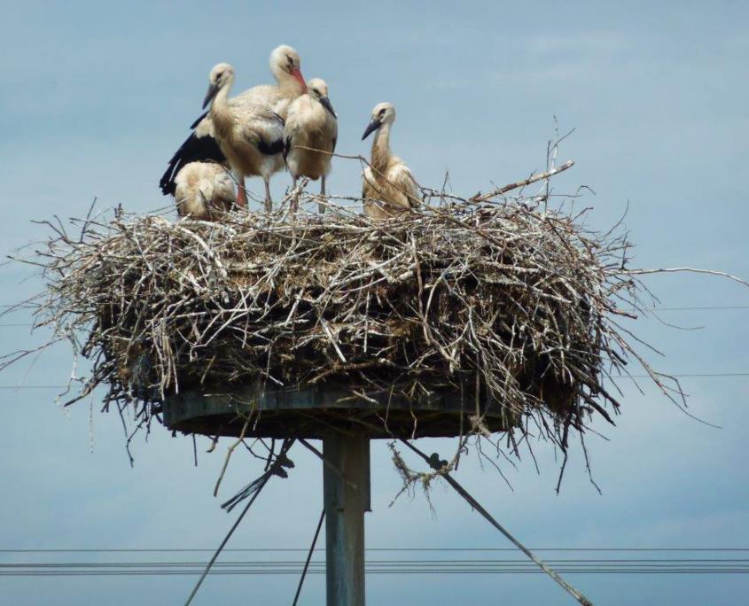 Mitten auf dem Hof der Pension Moritz bei Schwedt befindet sich ein Storchennest. Das Nest ist in jedem Jahr von Störchen besetzt. Hier werden seit 1994 Junge aufgezogen.